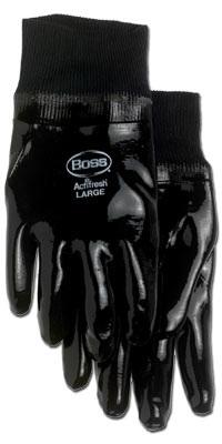 CHEMguardâ„¢+ Neoprene chemical resistant gloves are designed to protect hands when handling many alcohols, oils, solvents and caustics. The knit wrist seals out dirt and particles. Lined for comfort. Neoprene is one of the best coatings to protect against petroleum based solvents, alkalis and acids. Impermeable to liquids and oils. Excellent tensile strength.