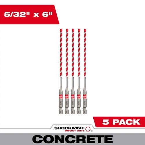- Includes (5) 5/32" x 6" Hammer Drill Bits