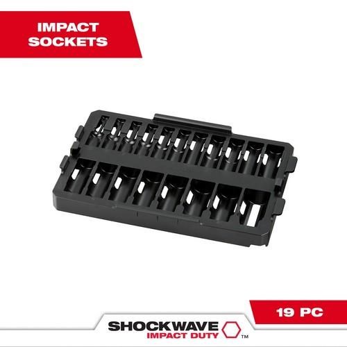 - Tray fits the following Milwaukee SHOCKWAVE Impact Duty™ Deep Sockets: 6mm, 7mm, 8mm, 9mm, 10mm, 11mm, 12mm, 13mm, 14mm, 15mm, 16mm, 17mm, 18mm, 19mm, 20mm, 21mm, 22mm, 23mm, 24mm