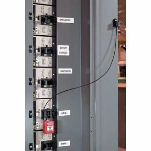 - Lanyard for mounting padlock or hasp near lockout point