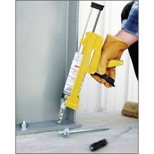 AT Acrylic-Tie® is a two component, high solids, 10:1 ratio acrylic-based adhesive for use as a high strength, anchor-grouting material. Formulated for use in all types of weather, AT is designed to dispense easily and cure at temperatures down to 0°F. Resin and initiator are dispensed and mixed simultaneously through the mixing nozzle. AT meets the physical requirements of ASTM C881, Type I & IV, Grade 3, Classes A, B & C, except Acrylic-Tie is a non-epoxy product formulated for fast cure time.