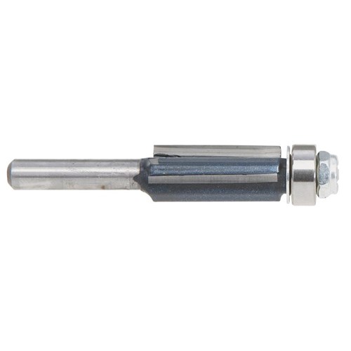 Laminate & Trim Router Bit Type: Flush TrimCut Diameter (in): 0.5Shank Diameter: 1/4 inShank Length (in): 1.625Number of Flutes: 3Flute Length (in): 1Overall Length (in): 2.5625Router Bit Angle: 0Bit Material: Carbide TippedColor / Finish: MetalSet / Individual: IndividualBearing Included: YesCase Included: NoPackage Contents: 1 BitWarranty: No Warranty