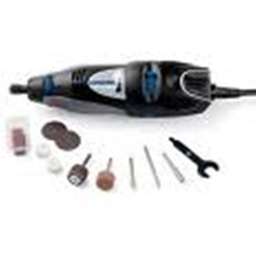 Powered Tool Power Source: Electric - CordedBits Included: 5Length (in): 6Width (in): 2.5Height (in): 2.5Tool Weight (lbs): 1.2Cord Length (ft): 6Voltage: 120Amperage (A): 1.15Case Included: NoChuck Capacity: 1/4 In.Chuck Design: KeyedColor / Finish: GrayCordless / Corded: CordedHousing Material: High Density PlasticMain Handle Type: ErgonomicMultiple Speeds: Variable SpeedMaximum RPM - No Load: 35000Reverse: NoSide Handle: NoVariable Speed: YesBump-Off Switch: NoCSA Certified: YesETL Listed: NoUL Listed: YesPackage Contents: Rotary Tool, (10) Assorted AccessoriesWarranty: Limited 5 Year