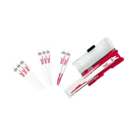 The Milwaukee® 9 piece Sawzall® blade set features an assortment of standard wood and metal cutting Sawzall® blades for a broad range of professional applications. The set includes two 6'' wood cutting blades for increased control, one 9'' wood cutting blade for greater cutting capacity, three 6'' 14TPI blades for medium to thick metal cutting and three 6'' 24 TPI blades for thin metal cutting. The set also includes an innovative job site durable case for convenient blade storage.