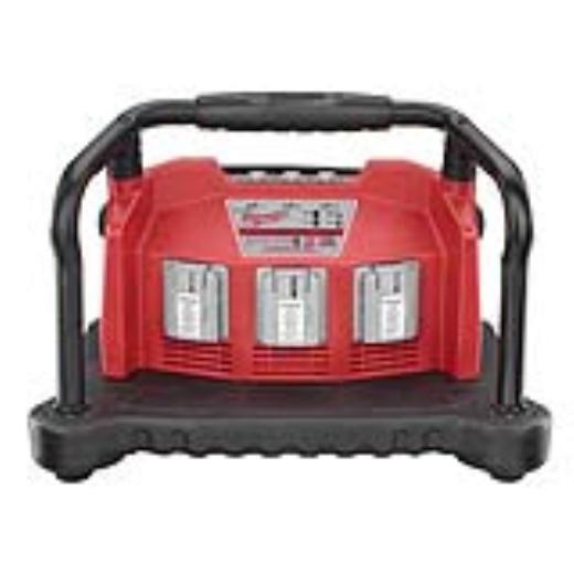 3-bay universal charger for charging all Milwaukee slide-on NiCd batteries and V18/28V LITHIUM-ION batteries. Charge time: 12V-18V NiCd: 45 minutes; V18/28V LITHIUM-ION: 60 minutes. Durable construction design to withstand tough job site conditions includes impact resistant base, protection side handle, and charger terminal dust cover. Convenient built-in cord wrap also acts as shock absorber. The high visibility LED indicates charging status. The charger is equipped with a 9 ft. pass through plug.