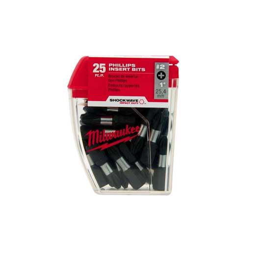 Milwaukee® Shockwave Impact Duty Driver Bits are engineered for extreme durability and up to 10x life. Made from proprietary steel and heat treated to control hardness, the Shockwave Impact Duty Driver Bits feature an innovatively designed geometric shock absorption zone to extend life. The forged tip allows for a secure grip and maximum contact eliminating stripping or slipping. Broadly targeting cordless users, the Shockwave Impact Duty accessory line is not only ideal for heavy duty impact applications, but delivers a full system solution for all the user's drilling and fastening needs. 25 per package.
