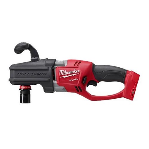 The M18 FUEL™ HOLE HAWG®  Right Angle Drill from Milwaukee  drills faster than the original corded HOLE HAWG®, delivers over 150 7/8" Holes Per Charge, and is over 30% lighter weight than its corded predecessor. The QUIK-LOK™ chuck is designed for quick, keyless, one-handed bit changes and is compatible with 7/16” Hex flat or groove shank bits.  Optimized for electricians, the M18 FUEL™ HOLE HAWG® is the first cordless tool of its kind, delivering game-changing productivity for professionals drilling with augers up to 1-1/4" and self-feed bits up to 2". The POWERSTATE® brushless motor delivers better performance than corded drills, especially under heavy load.  REDLINK PLUS™ Intelligence is the most advanced electronic system on the market, preventing damage to the tool and battery caused by overloading or overheating.  The REDLITHIUM™ XC4.0 batteries provide up to 2X more run time and recharges than standard lithium, operate down to 0*F/-18*C. and have a battery fuel gauge to display the remaining charge.