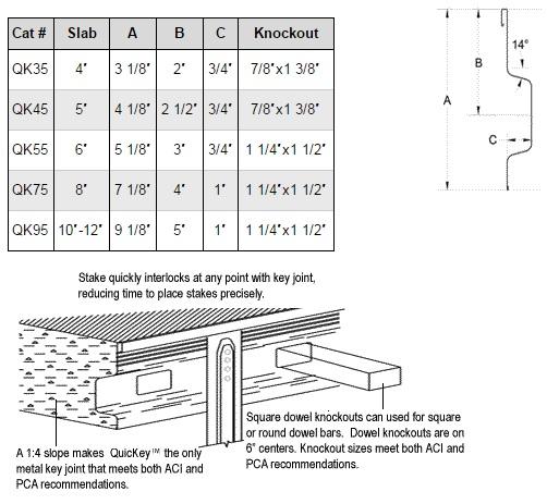 QuicKey™ [Patent No. 6502359] is the only galvanized joint system that features knockouts for square dowels, which provide better load transfer over round dowels and also reduce edge curl on the slab.