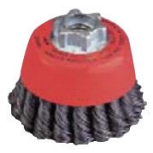 NortonĀ® 4" X 5/8" Twist Knot Wire Cup Brush with 5/8" - 11 arbor hole has a rigid structure and rotates at a speed of 9000 RPM. Carbon steel wire brush suits high impact cutting and cleaning on more demanding applications. Single row, twist knot construction limits flaring of the brush on corners and angles. It is sold as 5 per pack.