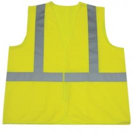 Lime fabric with 2” silverstriping, reflective vertical stripes on back, hook & loop closure