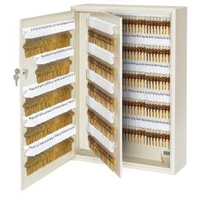 The Master Lock No. 7129 500-count Rekeyable Key Cabinet features heavy duty steel construction with a full length, hinged door and built-in slotted key racks. With a durable powder coated cabinet finish, the rekeyable wafer cylinder lock provides improved pick resistance and the key retaining security ensures key can’t be removed until cabinet is locked.