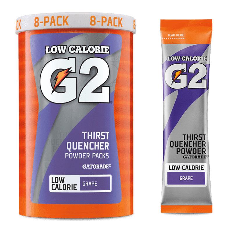 This low-calorie G2 sports drink from Gatorade, contains all the necessary electrolytes, vitamins and minerals to help you recover from exercise or competition, with only 50 calories per serving, and with the original Gatorade thirst quenching Grape flavor.