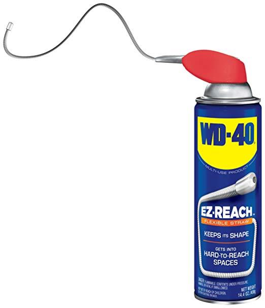 WD-40® Multi-Use Product protects metal from rust and corrosion, penetrates stuck parts, displaces moisture and lubricates almost anything.WD-40® EZ-REACH™ features an attached 8-inch flexible straw that bends and keeps its shape to get into hard-to-reach places.
