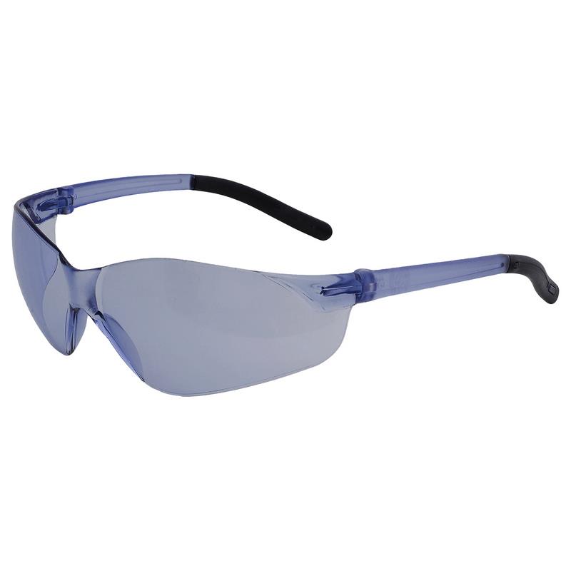 Frameless wraparound, 9.5 base curve, safety glass provides optical protection. 4-position adjustable length temples have non-slip rubber tips. Integrated nose pads. Stainless steel hinge screws. Lenses offer 99% UV protection. Meets ANSI Z87.1 - Impact.