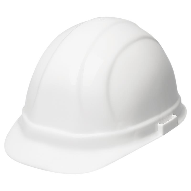 ANSI Type II hard hat molded from high density polyethylene. 4-point woven nylon suspension with Secure-fit ratchet adjusts to head sizes, 6 1/2 - 8. Padded, hinged ratchet hangs at nape of neck and is height adjustable for personalized fit. Hat accepts chin strap. Goggle retaining slots on suspension. Accommodates a variety of eye, face and hearing products. Moisture wicking brow pad is removable, washable and replaceable. Meets the low temperature (LT) option of the Z89.1 standard. Meets ANSI Z89.1, Type II, Class C, E & G requirements.