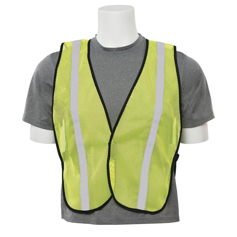 Lightweight, highly visible 100% polyester mesh. Adjustable hook and loop front closure. Elastic side straps. 1" reflective stripes on front and back. Does NOT Meet the requirements of ANSI/ISEA 107. One size fits most.