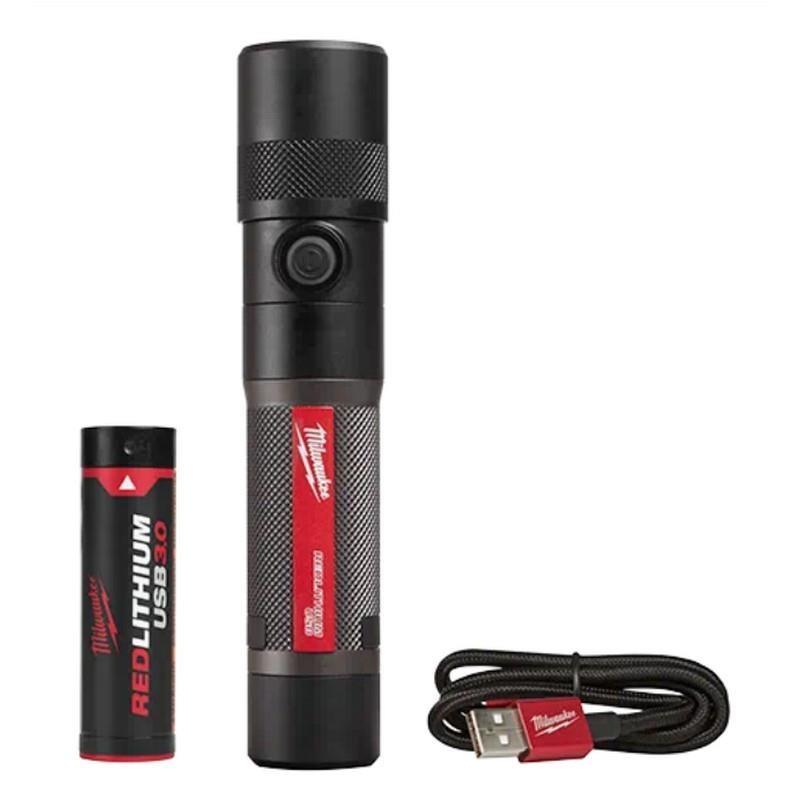 Our USB Rechargeable 1100L Twist Focus Flashlight offers 1100 Lumens with precise beam control. Leveraging advances in LED Technology, this rechargeable flashlight maintains a compact body while delivering 1100L of TRUEVIEW™ High Definition Output, giving you the ability to see up to 175-meters (574 feet). The flashlight features precision twist focusing for full control of the beam size and intensity allowing you to search, trace, or inspect better. Designed for easy carry and storage, this compact flashlight has a removable clip for versatile attachment. Optimized for one-click operation, the multi-functional power button offers battery indication and mode selection. The mode memory intelligence powers up the flashlight in the last mode used. Maximize brightness or extend runtime with high, medium, and low mode options with up to 14 hours of runtime. Built for the toughest conditions, this waterproof flashlight has an IP67 rating and withstands submersion up to 1-Meter and is rated for 4-Meter drops. The MILWAUKEE® USB Rechargeable 1100L Twist Focus Flashlight is powered by the REDLITHIUM™ USB 3.0AH Battery, providing all-day run-time, more recharges, and 3x faster charge time. The Milwaukee REDLITHIUM™ USB Battery can be recharged in the flashlight via Micro USB or swapped out with additional REDLITHIUM™ USB Batteries for virtually no downtime. The 1100L Twist Focus Flashlight is covered by a limited lifetime warranty.