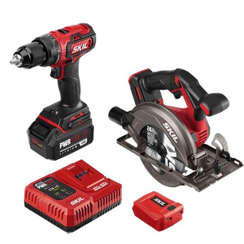 2-Tool Combo: Electric Saw and Cordless Drill with Battery and Charger. Tackle your to-do list in no time with this convenient cordless power tools combo kit designed for maximum efficiency and performance. Use the Brushless 20V 1/2 Inch Cordless Drill Driver for a variety of projects—from light-duty to heavy-duty renovation jobs. This electric drill’s brushless motor packs high-power in every drive, and the speed settings provide maximum control. The Brushless 20V 6-1/2 Cordless Circular Saw has a 24-tooth ultra-thin carbide-tipped blade that helps you make quick and accurate wood cuts. This set also includes a PWRCORE 20 4.0Ah Lithium Battery and a PWRJUMP Charger, ensuring a longer run time and battery life so you can power through any project without stopping. What's Included: Drill/Driver; Circular Saw; 4.0Ah Battery; PWR JUMP Charger; USB Charging Adapter; Belt Clip; PH2 bit; Carbide blade; Allen key; Vacuum adaptor