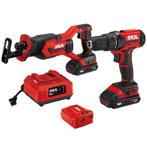SKIL PWRCORE 20 3-Tool Combo Kit. Your DIY project needs are met with the SKIL 20V 3-Tool Combo Kit. Tighten screws, assemble furniture and drill through wood, plastic or metal surfaces with a Cordless Drill Driver. Cut through 2x4s and plywood with the cordless Circular Saw. Charge your electronic devices with the PWRASSIST 20 USB Charging Adapter. This combo kit includes one PWRCORE 20 2.0Ah Lithium Battery and one 20V Charger.