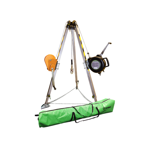 The Safewaze 019-11003 Adjustable tripod kit serves as the support element for entry/egress into confined spaces, and also the rescue/evacuation of workers if necessary. It can also provide an anchorage for fall protection, work positioning, and personnel riding systems. 3-Way System provides fall protection for worker within confined space area. Material winch allows for the raising and lowering of materials to workers within the confined space area.