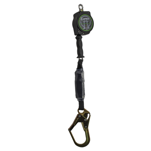 The Safewaze SW-8008-10-RBH is a Class A 10' galvanized cable retractable lifeline with a mobility enhancing swivel top, fall gate rated carabiner and coated components for harsh and demanding work environments. The unit's galvanized cable provides greater durability versus a comparable sized web unit and the housing design makes it lightweight and portable.