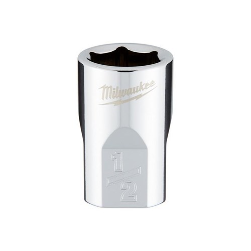 The Milwaukee 3/8 in. drive 1/2 in. SAE 6-point socket was designed from the ground to be part of the most versatile socket family. The innovative socket design has four parallel flat sides, which deter rolling and are wrench-compatible. Socket sizes are stamped into the flats for improved easy-to-read visibility. Optimized socket geometry helps reduce bolt rounding and stripping.