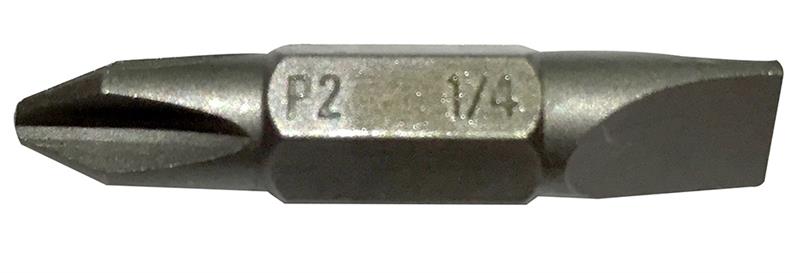 Double ended Phillips bit #2 and 1/4 in. slotted replacement bit.