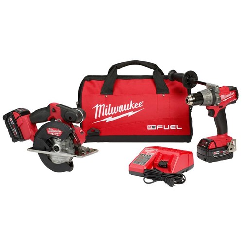 The 2898-22 M18 FUEL™ cordless 2-tool Combo kit includes the M18 FUEL™ 1/2 in. hammer drill/driver (2704-20) and the M18 FUEL™ metal cutting circular saw. M18 FUEL™ features a POWERSTATE™ brushless motor, REDLINK Plus™ electronic intelligence and REDLITHI