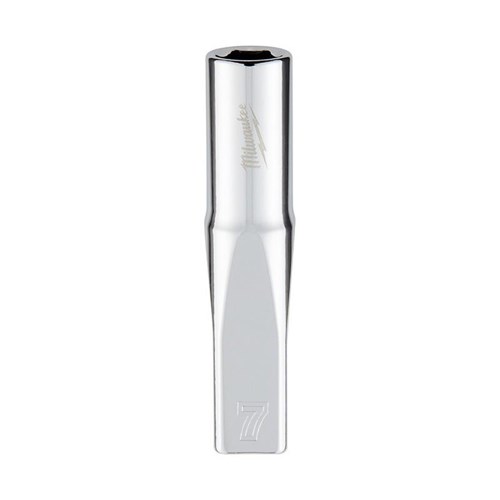 The Milwaukee 1/4 in. drive 7mm metric 6-point deep socket was designed from the ground to be part of the most versatile socket family. The innovative socket design has four parallel flat sides, which deter rolling and are wrench-compatible. Socket sizes are stamped into the flats for improved easy-to-read visibility. Optimized socket geometry helps reduce bolt rounding and stripping.
