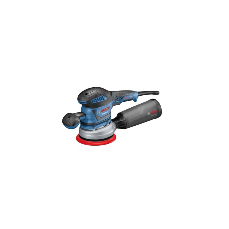 The Bosch GEX34-6N 6 In. Multi-Hole Random Orbit Sander/Polisher features the ability to use virtually any brand of sandpaper on the market because of the multi-hole design. The sander still maintains optimum dust extraction to help ensure better quality of the finished workpiece’s surface. It also provides 2X sandpaper life due to increased efficiency (this is also due to the multi-hole design that the sander can increase the life of the sandpaper). It features a microfilter dust canister with integrated paper filter and a vacuum-hose connection. The tool features a solid die-cast aluminum gear housing with exclusive dual-bearing pad mount, for less vibration. The variable-speed dial allows the user to match the speed of the sander to the workpiece and task, from 5,500 to 12,000 orbits per minute (opm). To ensure a strong grip of the disc while in use, it employs a hook-and-loop disc attachment system. The sander was designed with an ergonomic soft-grip top and body.