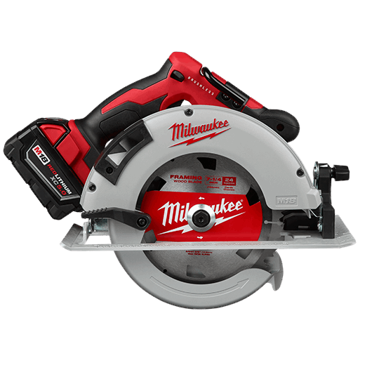 M18™ Brushless 7-1/4" Circular Saw delivers up to 40% more power than circular saws with brushed motors, while providing up to 30% more run-time. The Milwaukee® built motor, REDLINK™ electronics and REDLITHIUM™ XC5.0 battery provide more efficient power delivery, more power and fewer trips to the charger. With 5,000 RPM, the 2631 provides smooth cutting, and at only 9.0 lbs, it is lighter than most corded saws. The 7-1/4” Brushless Circular Saw also features an integrated rafter hook, magnesium guards, an aluminum shoe and LED light.